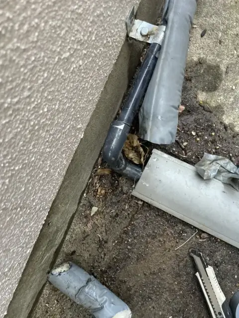 最初はホースが外れたのかと思い見てみましたが、どうも排水がうまく流れていない様子でした。
