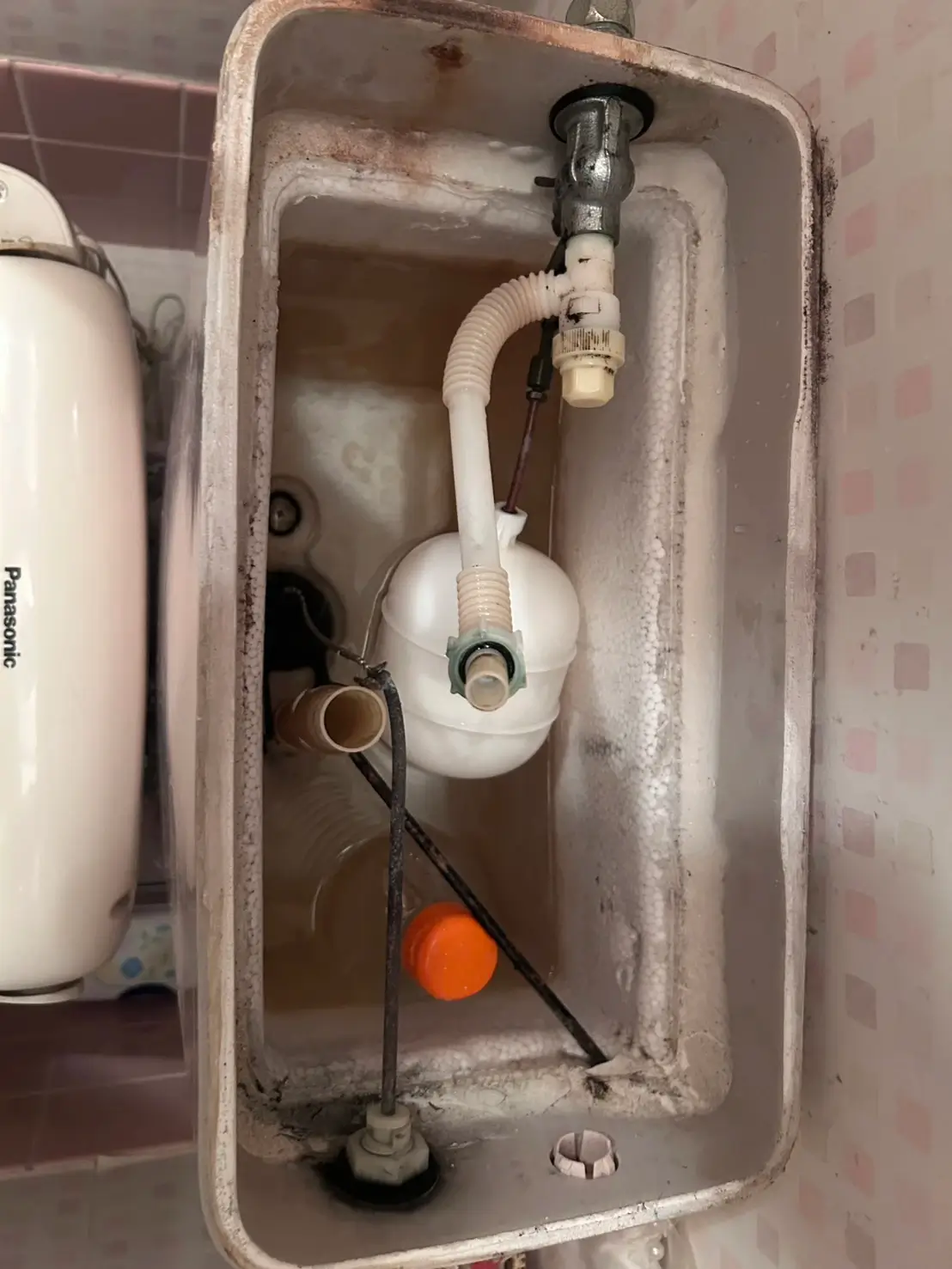 実際に現場でタンク内部を点検したところ、経年劣化によって内部パーツの一部がうまく作動せず、タンク内で少量の水が常時漏れ続けている状態でした。