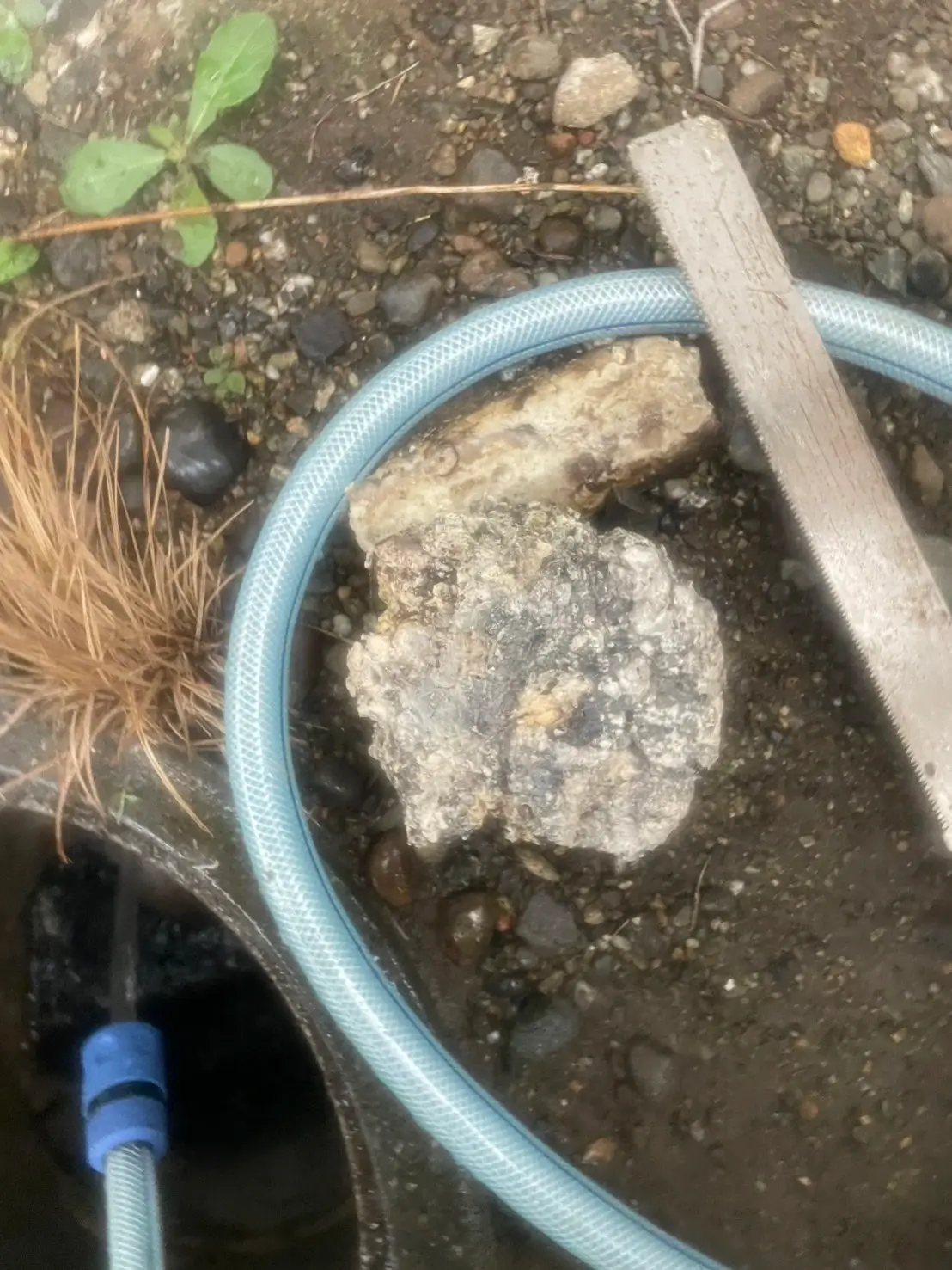 そのため高圧洗浄による管内洗浄と異物除去を行い、正常な排水機能に回復しております。