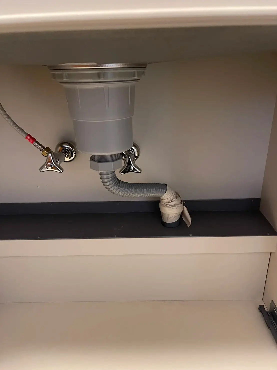 お伺いした際、キッチンの排水管が複雑に曲がっており、水の流れが悪くなっている状態を確認いたしました。