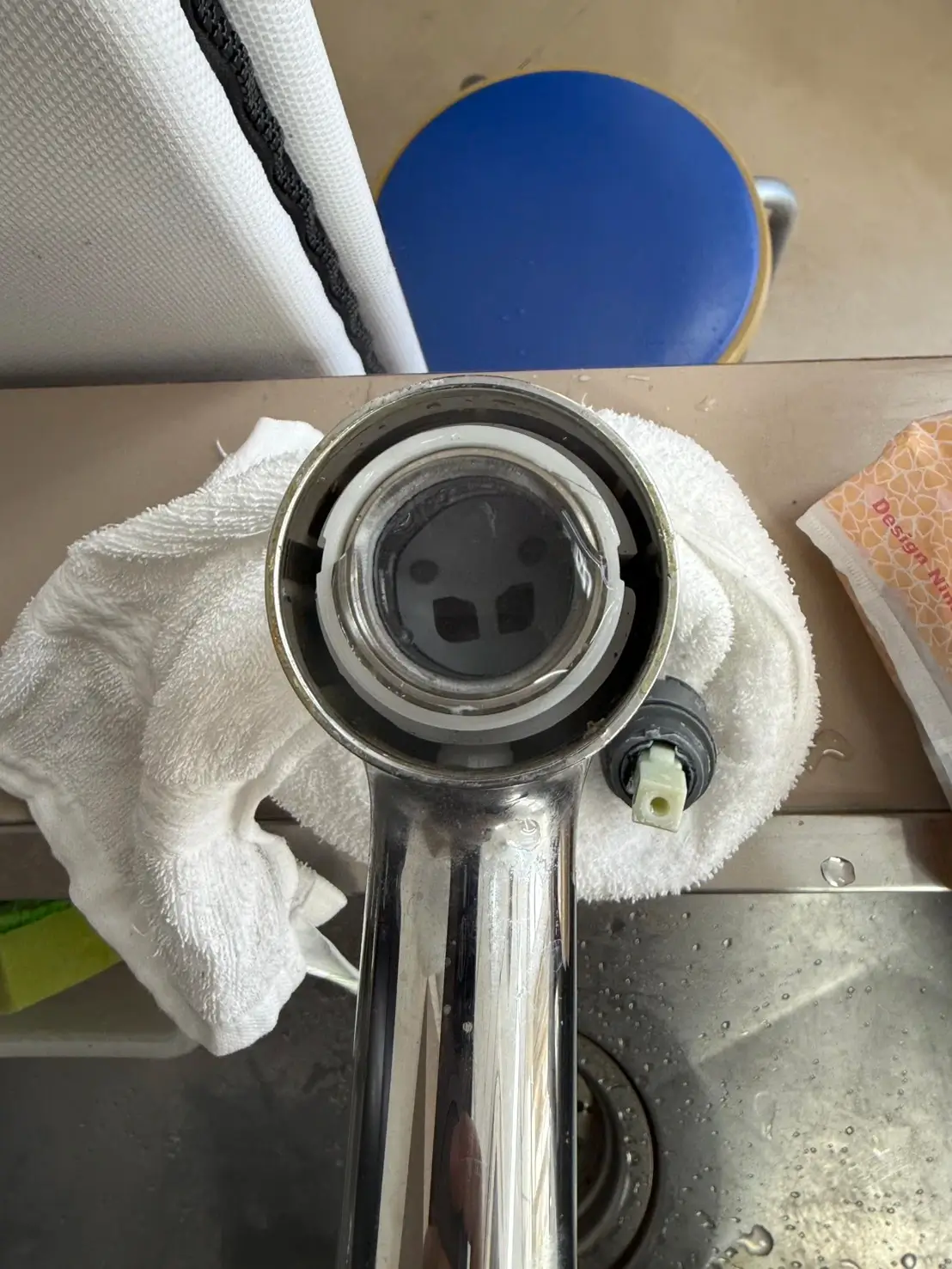 現地では蛇口の部品を確認し、劣化していた箇所を交換する作業を行いました。