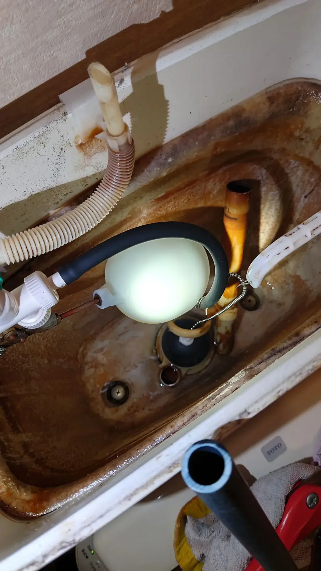 トイレを使おうとした時に、タンクの中でいつもと違う音がして確認してみると、オーバーフロー管が折れている状態でした。