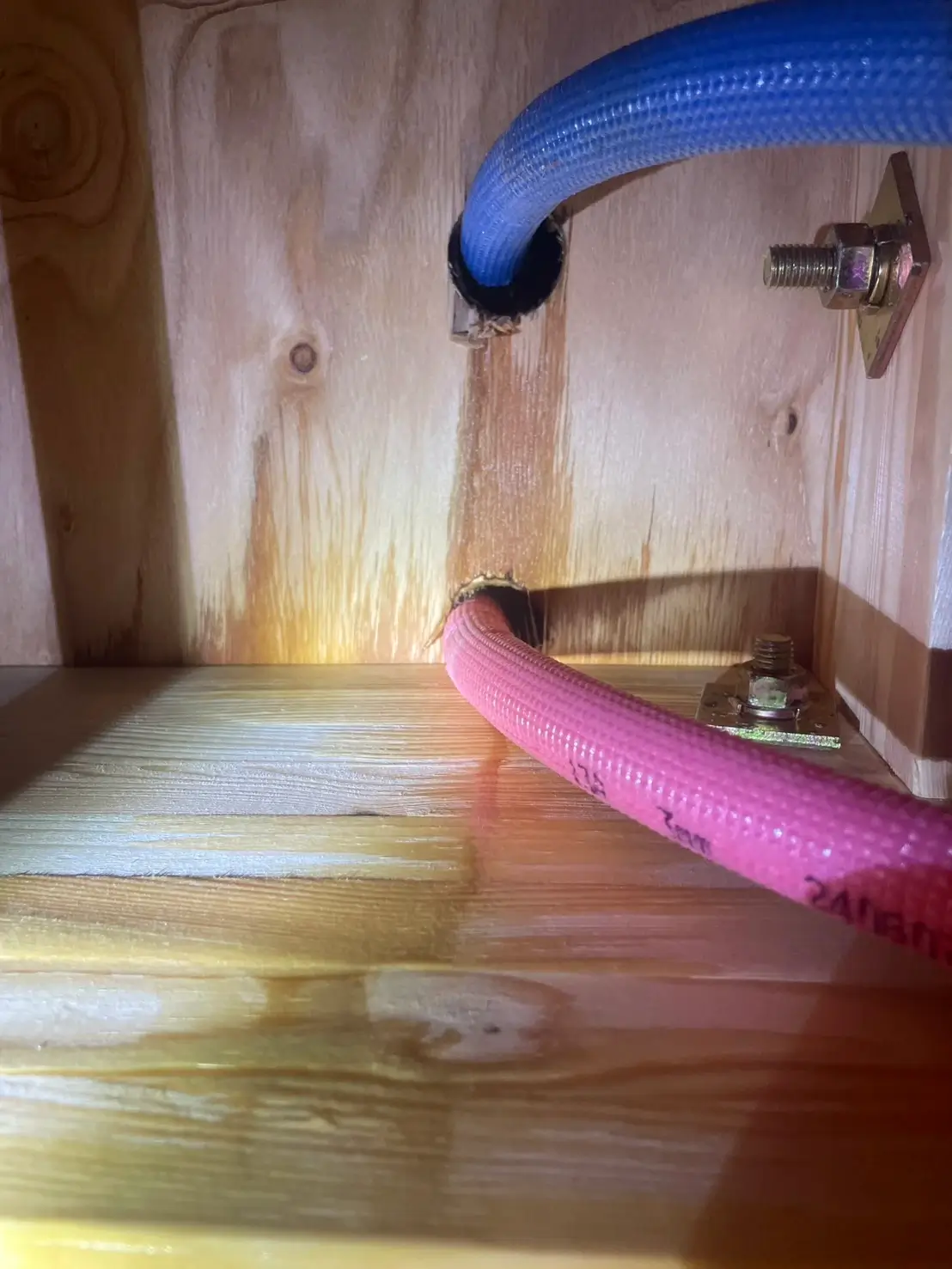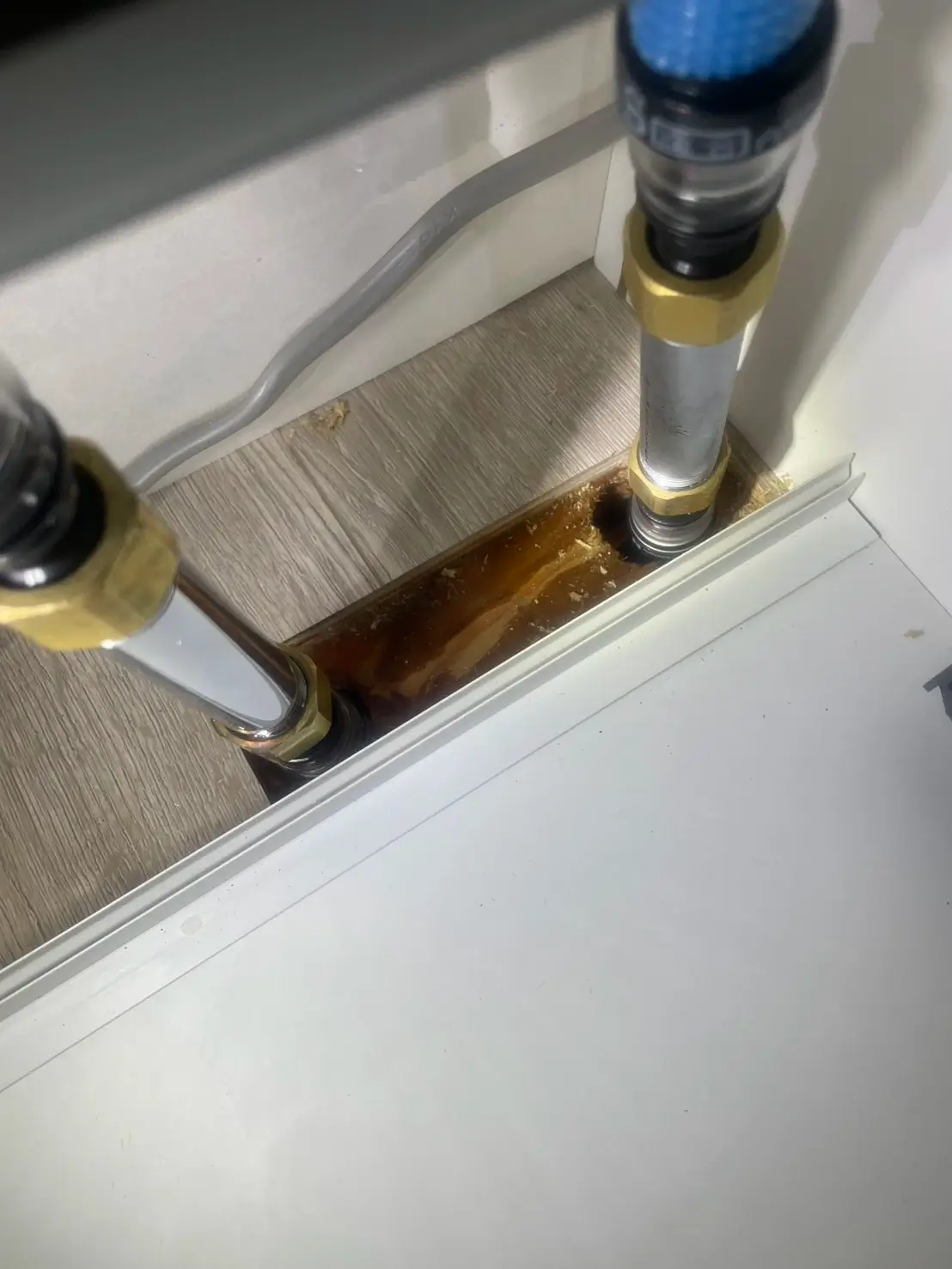 夜、階下の住人の方から「天井から水が落ちてきている」と連絡を受け、驚いて確認したところ、キッチン下の配管あたりから水漏れしているようでした。