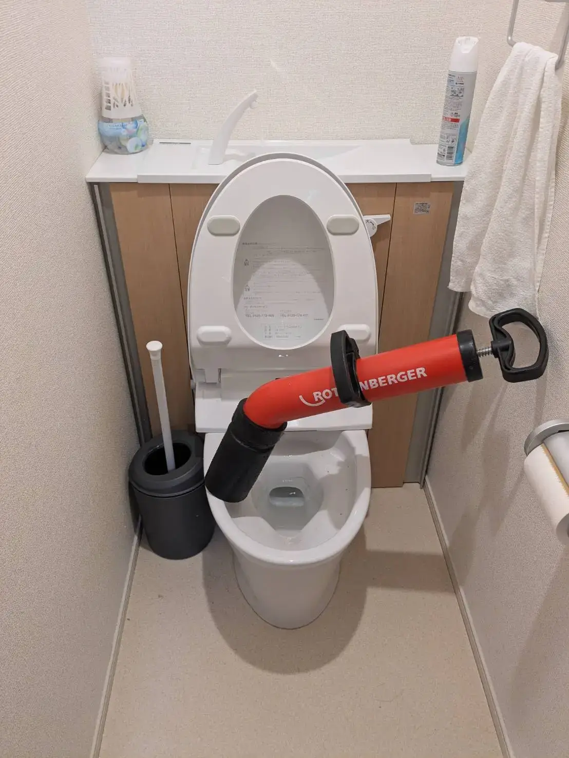 夜中にトイレを使ったあと、水が流れにくくなってしまい、何度か試しているうちに完全につまってしまいました。