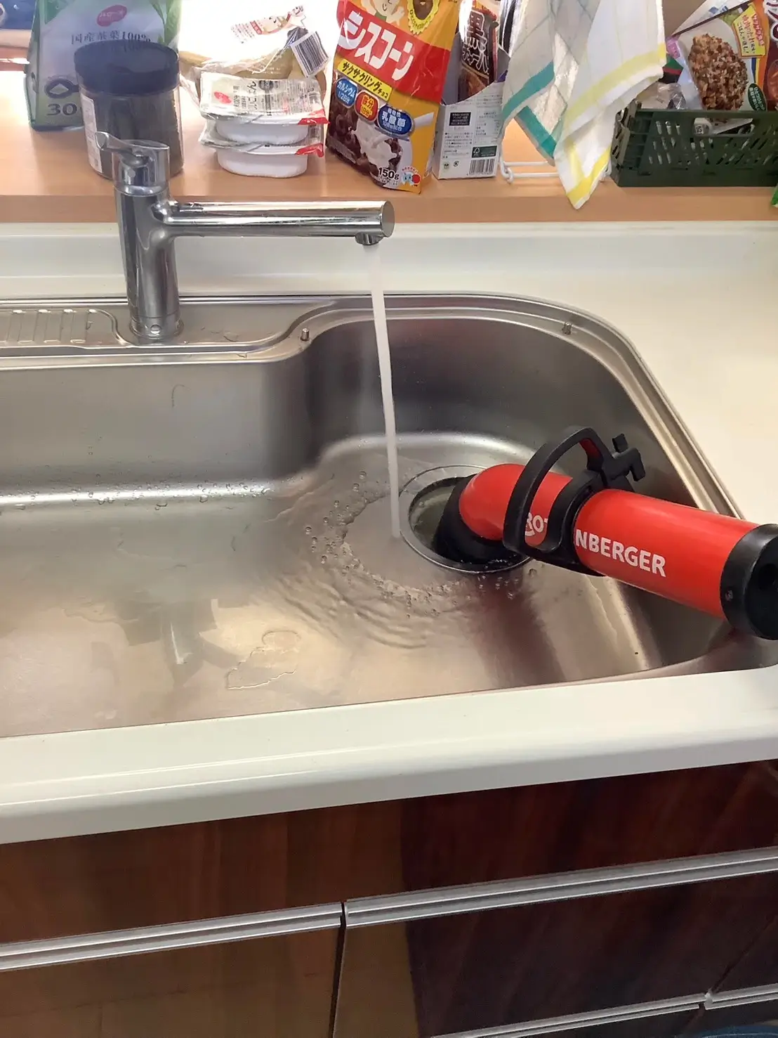ローポンプでの作業は迅速かつ的確で、あっという間に水の流れが戻り、台所を快適に使えるようになりました。