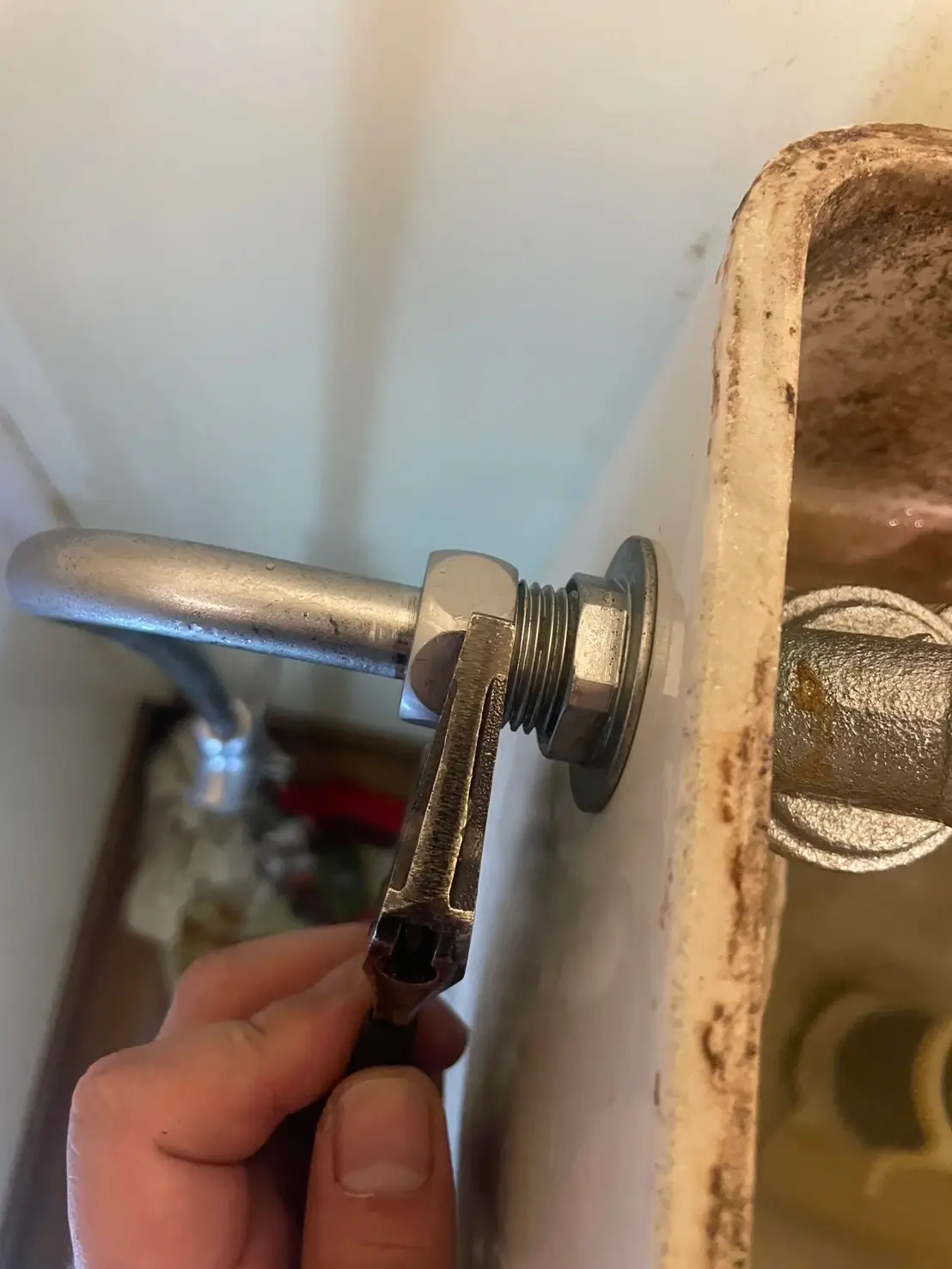 名張市さつき台で発生したトイレのタンク水漏れに対し、部品調整で解消させていただきました。
