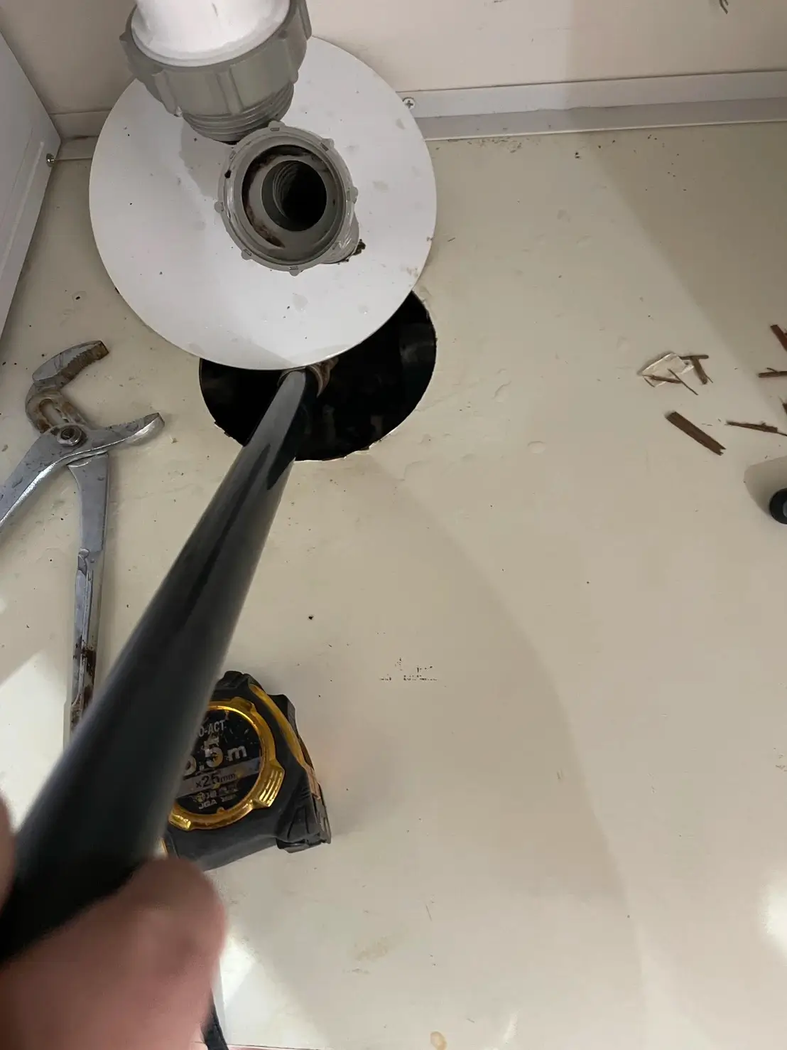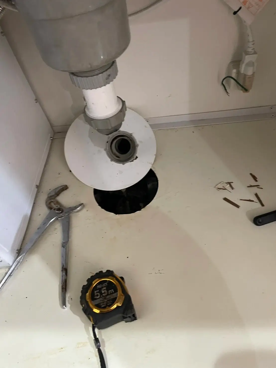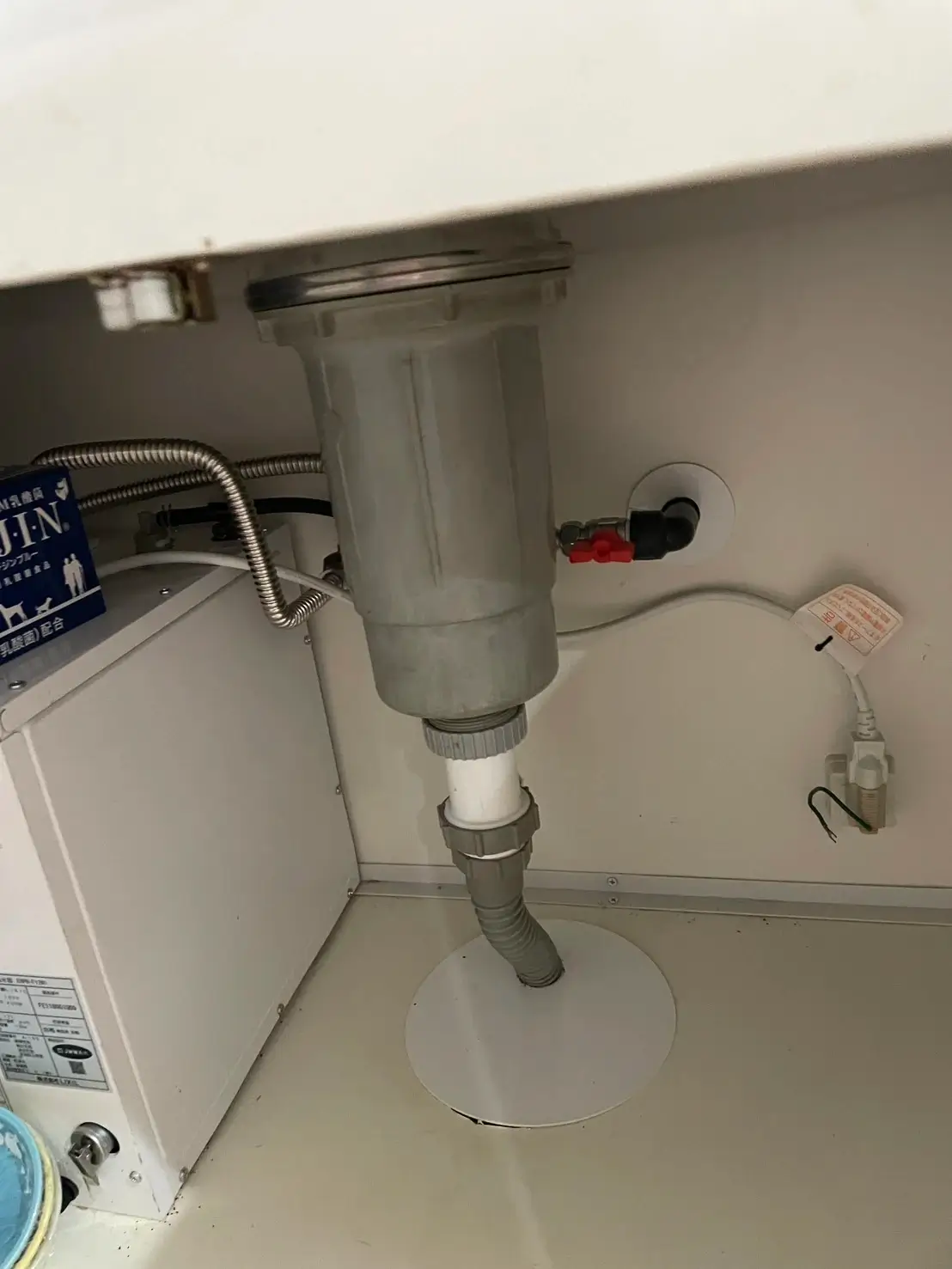まずシンク下の排水トラップを慎重に取り外しました。