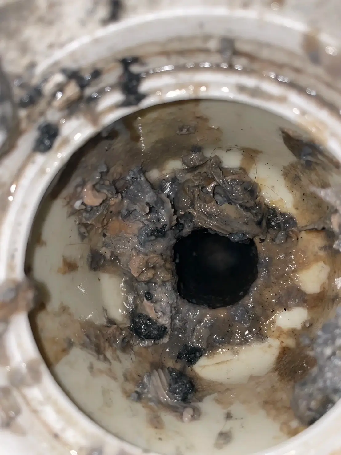 現地で点検したところ、排水トラップ内部に汚れと異物が蓄積していました。